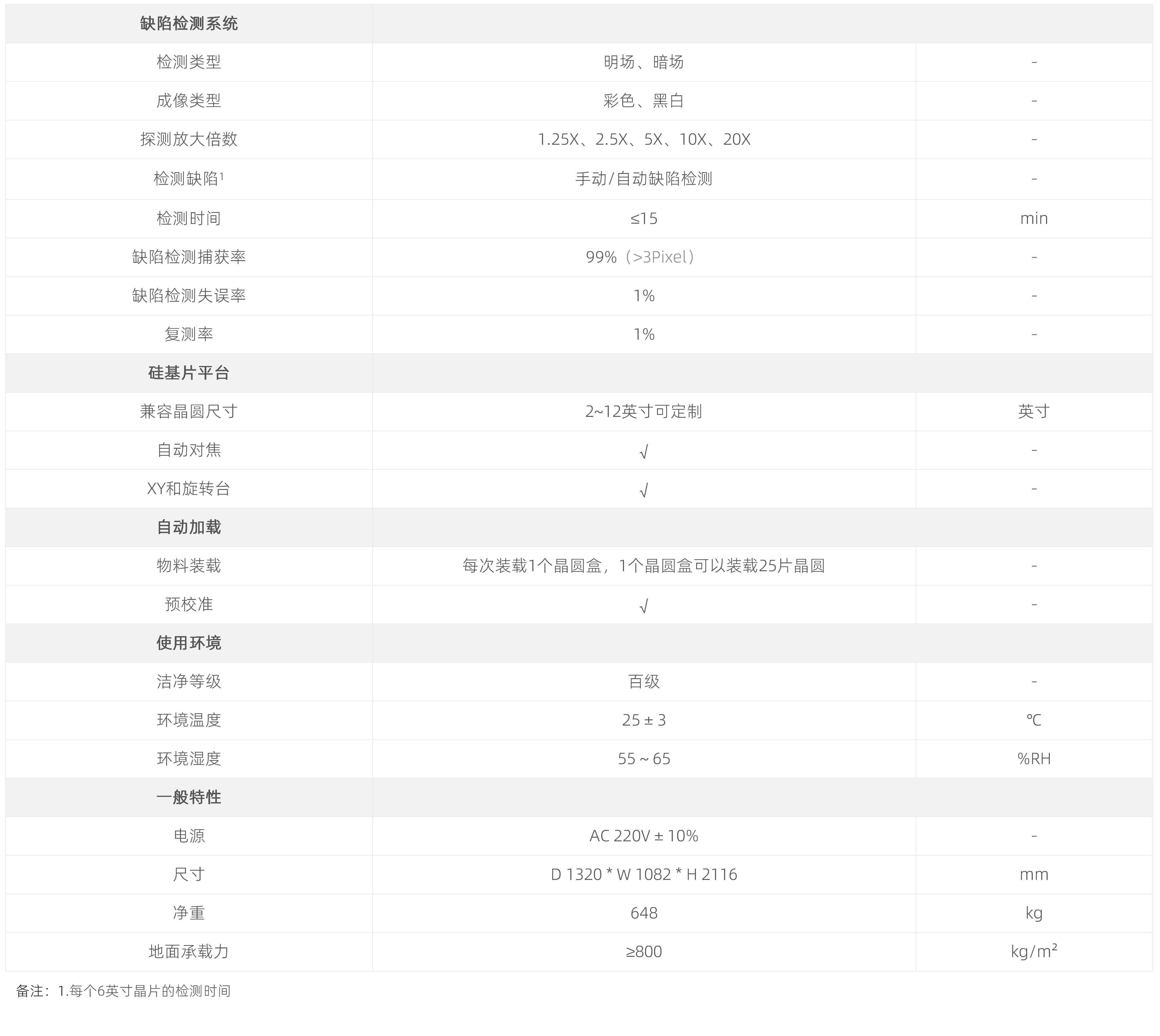 該係統適用於Silicon / SiC / GaAs / GaN / InP等,有圖形與無圖形缺(quē)陷檢測,可檢測(cè)汙點、劃痕、凸(tū)凹、斷裂、異色、尺寸誤差等多種缺陷類型。