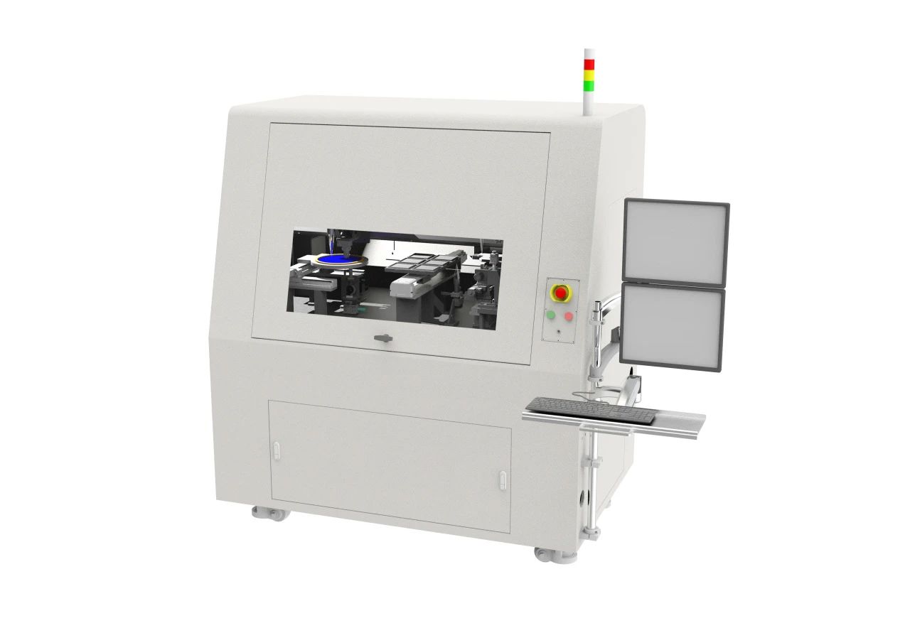 光芯片自動上(shàng)下料測試係統采用藍膜/Gel-Pak等自動上下料技術,搭配(pèi)高精度光纖自動耦合與位移平台(tái)和高效的視覺定位算法,實現芯片全自動OO/OE/EE/RF測試,大大提高測(cè)試效(xiào)率(lǜ)及精度,廣泛應用於矽光、薄膜铌酸鋰、InP/GaAs等光芯(xīn)片領域。